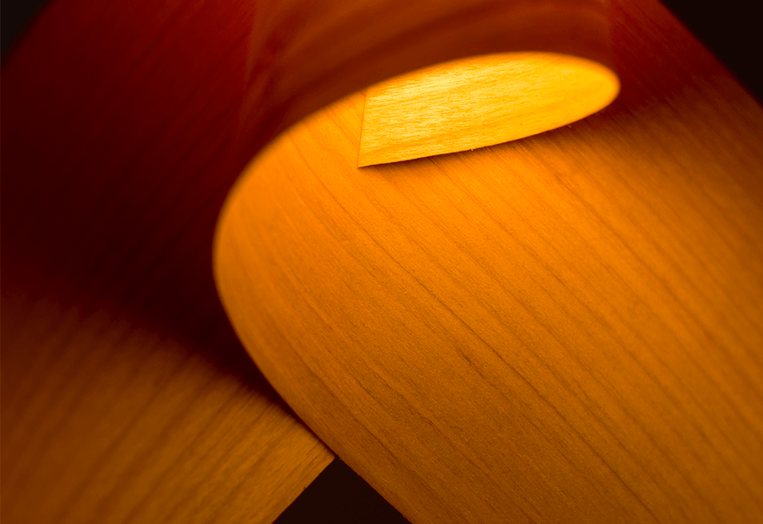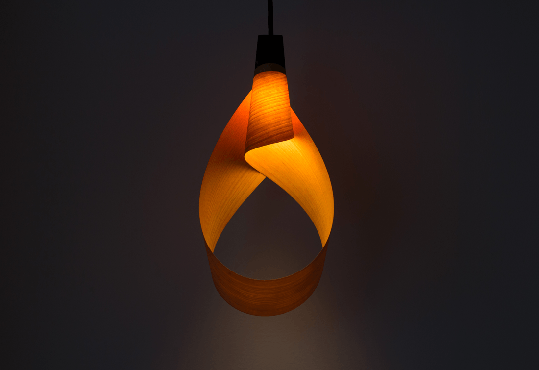 Lichtfang ist eine filigrane Hängeleuchte, die mit Dynamik und dem Wechsel von konkaven und konvexen Formen spielt. Der von Hand gebogene Furnierbogen fängt das Licht ein und streut es in zwei Richtungen. Mit Leichtigkeit gelingt es Lichtfang den Raum in warmes Licht zu tauchen.