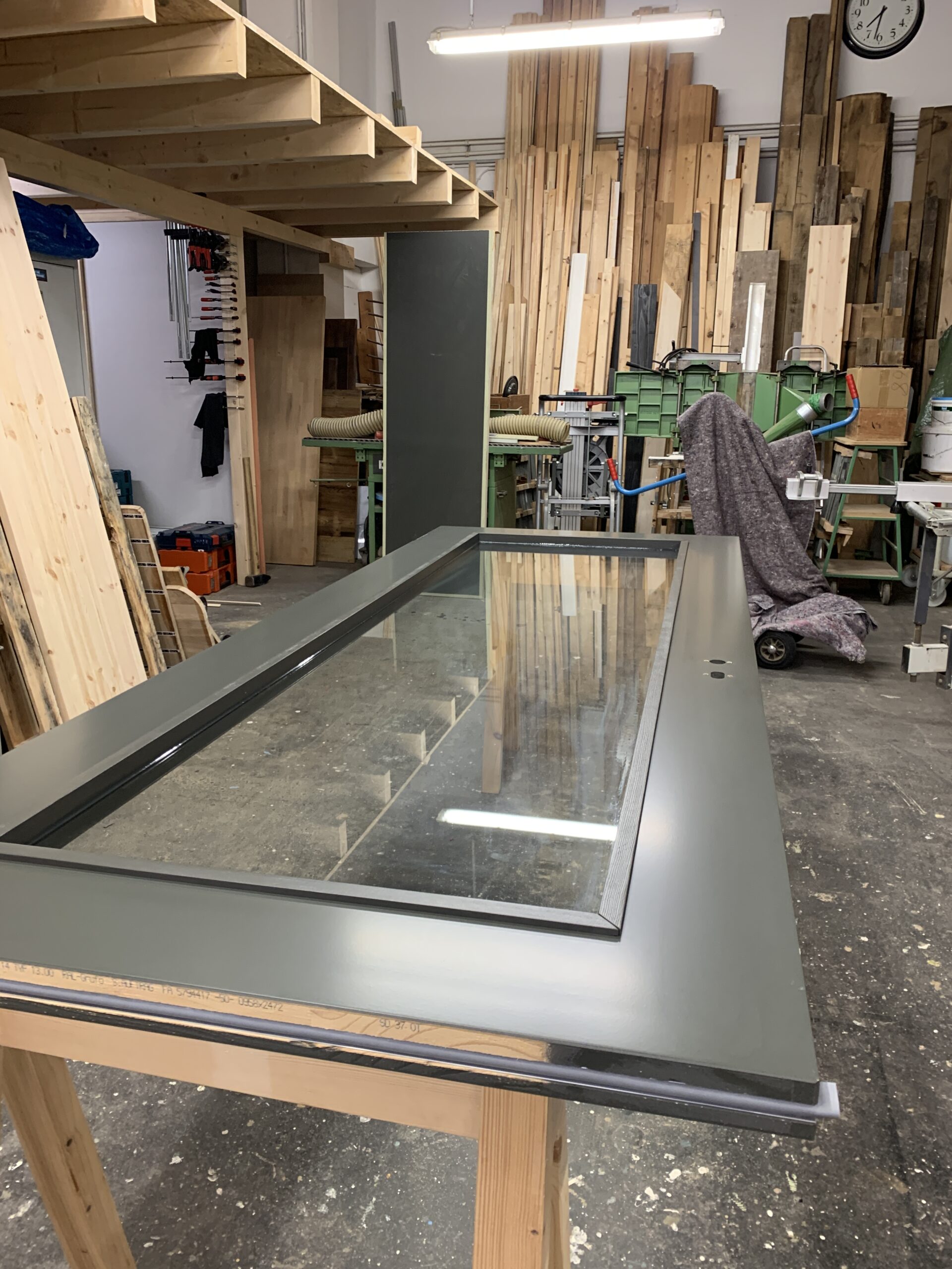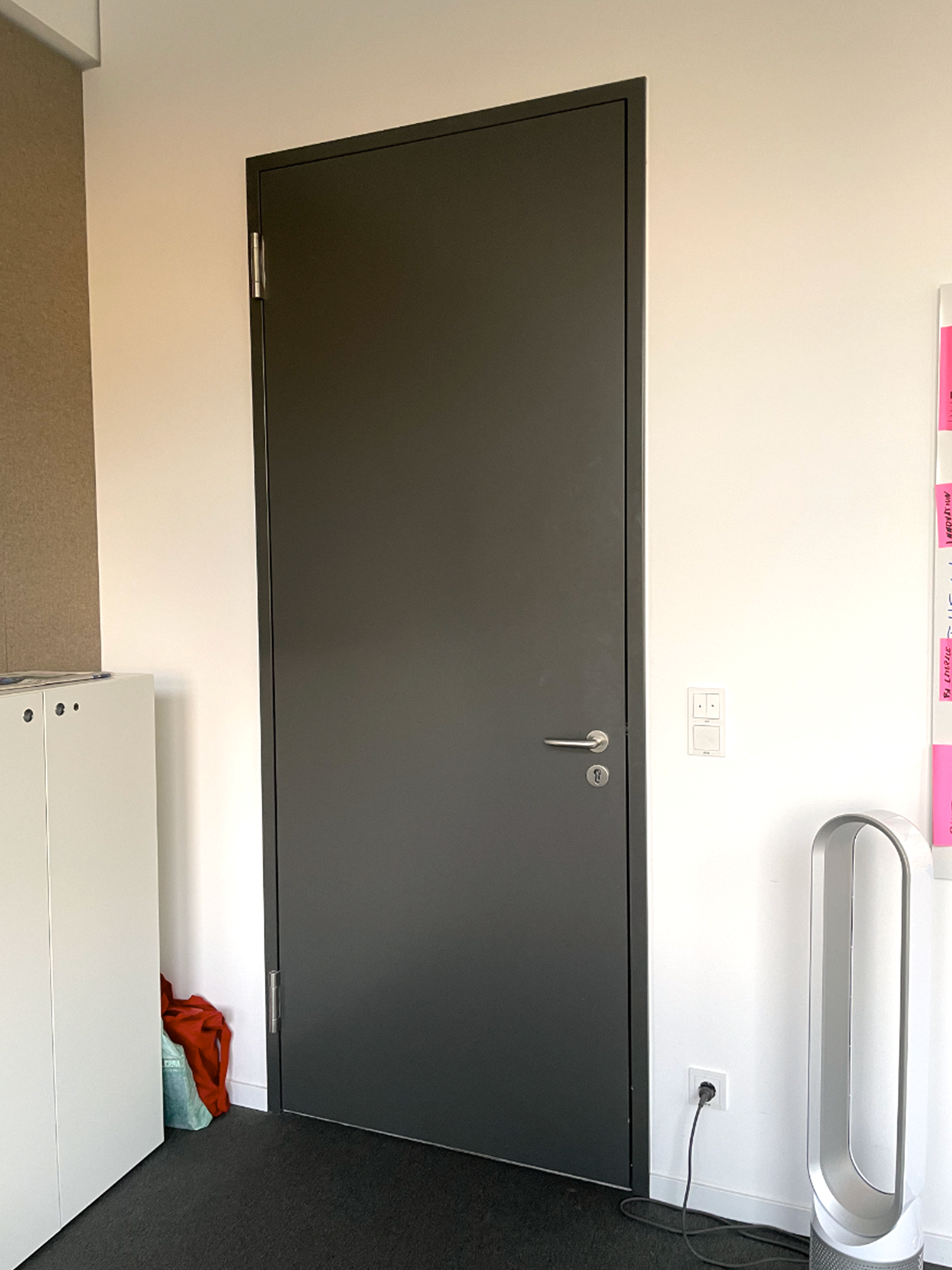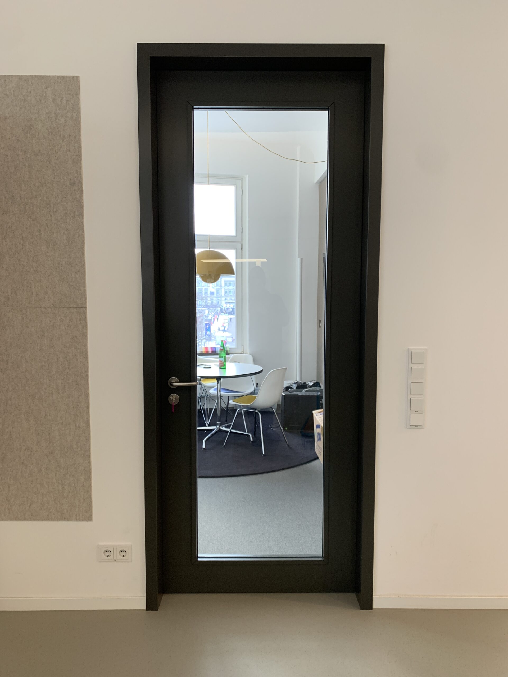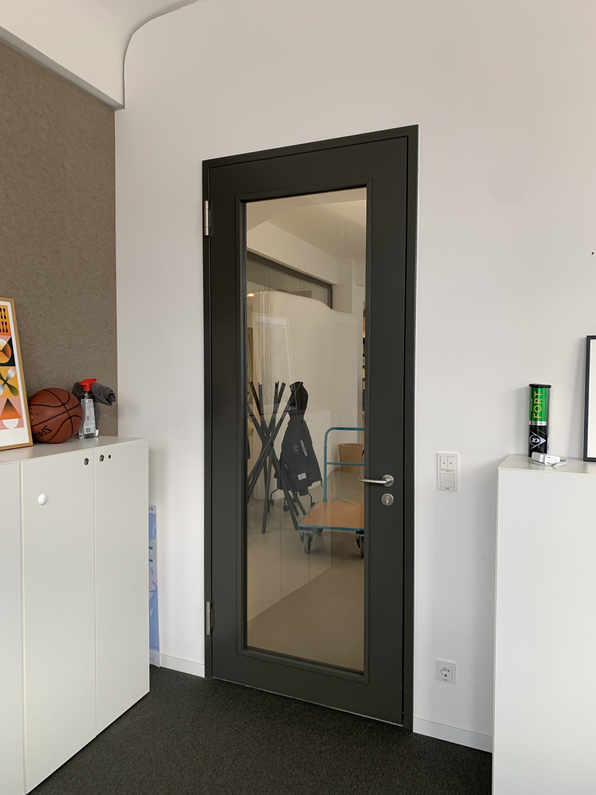 Tür mit Durchblick Es fehlte der visuelle Kontakt zum dem, was vor der Tür passiert. Bei dem Umbau einer Bürotür wurde 8mm VSG Glas eingesetzt. 2024